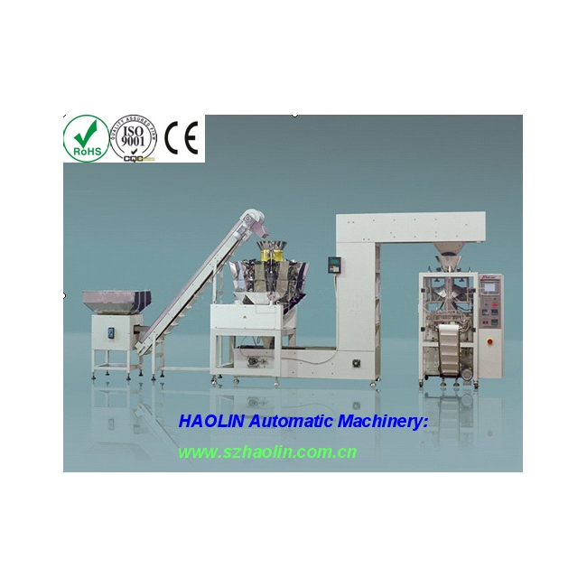 立式包裝機(jī); Z型輸送機(jī); 多頭組合稱; 成品運(yùn)送機(jī); 重量檢測機(jī); 金屬探測儀; 物料提升機(jī)